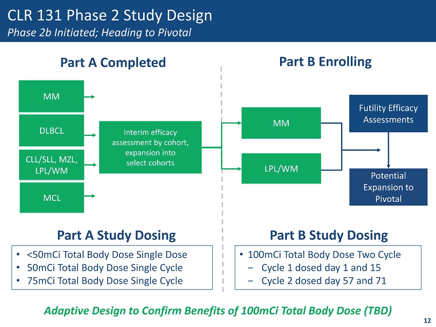 Company Summary Company Overview 1 11 CLR 131 Registration Path for Hematologic Malignancies 2 Presentation Topics Establishing CLR 131 in Pediatric Malignancies 3 4