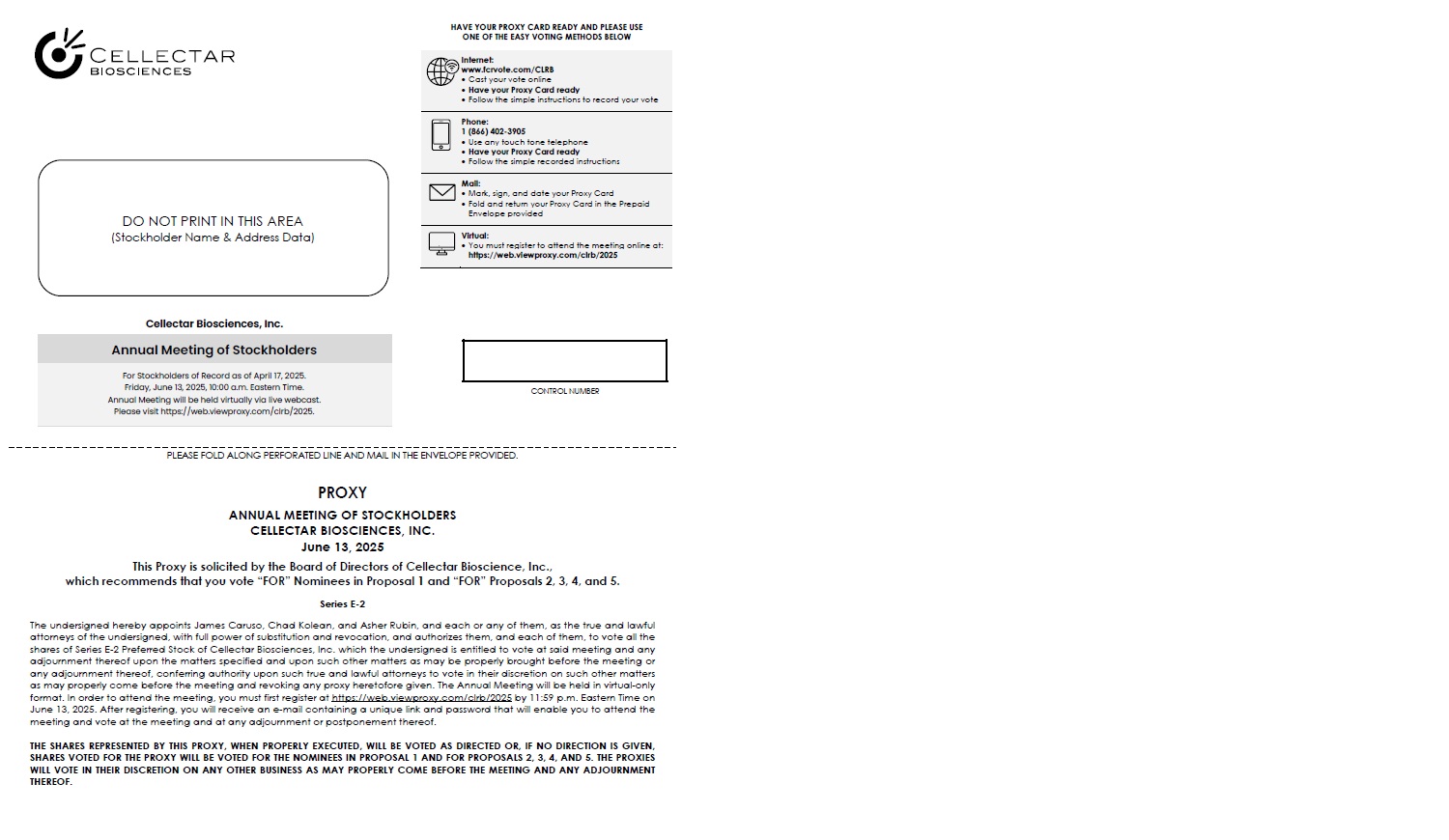You will be able to attend the Annual Meeting by visiting https://web.viewproxy.com/clrb/2025 and using your 11-digit control number included on your Notice, on your Proxy Card, or on the instructions that accompanied your Proxy Materials to enter the meeting.