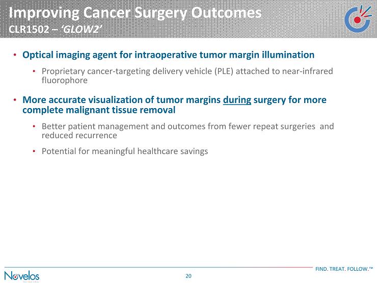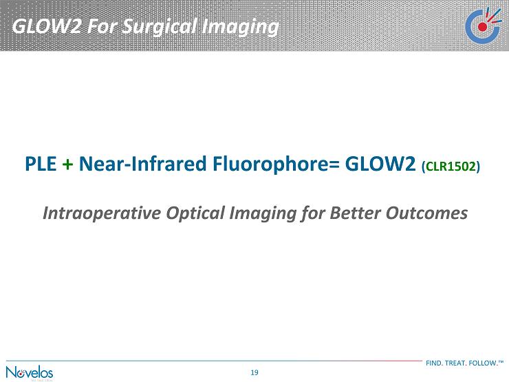 GLOW2 For Surgical Imaging FIND . TREAT . FOLLOW . ™ 19 PLE + Near - Infrared Fluorophore= GLOW2 ( CLR1502 ) Intraoperative O ptical Imaging for Better Outcomes