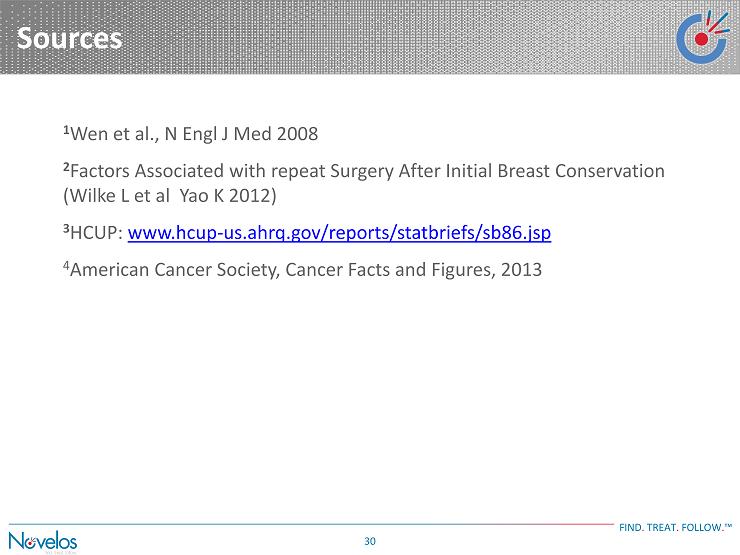 Sources FIND . TREAT . FOLLOW . ™ 30 1 Wen et al., N Engl J Med 2008 2 Factors Associated with repeat Surgery After Initial Breast Conservation (Wilke L et al Yao K 2012) 3 HCUP: www.hcup - us.ahrq.gov/reports/statbriefs/sb86. jsp 4 American Cancer Society, Cancer Facts and Figures, 2013