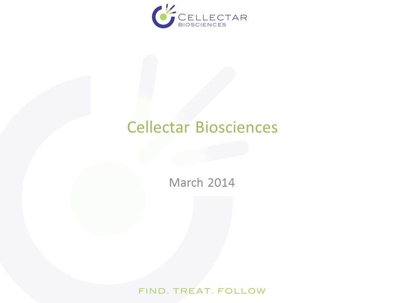 Cellectar At a Glance • Proprietary cancer - targeting delivery platform with potential to image and treat a wide range of solid tumors • Tumor Imaging - More accurate for better patient management • Therapy - Better targeted delivery to cancer cells and cancer stem cells • Surgery - Intraoperative optical imaging for better outcomes • Substantial scale - up potential across many products / indications • Data from Phase I/II and Phase II trials expected in next 12 - 18 months: • I - 124 - CLR1404: Phase II imaging trial in brain cancer • I - 131 - CLR1404: Phase Ib dose - escalation safety data • CLR1502: Phase I surgical imaging during lumpectomy