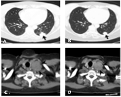A similar response was seen with the patient’s left cervical lymphadenopathy (C and D, arrowheads).