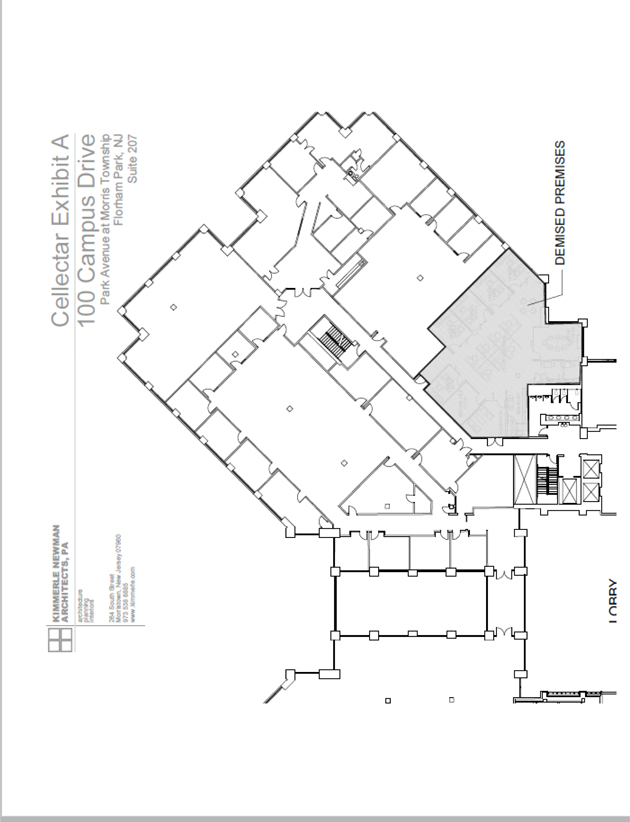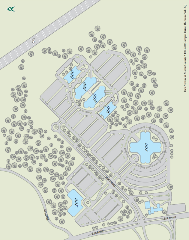 I. Demised Premises: The Demised Premises is depicted on the floor plan annexed hereto and made a part hereof as Exhibit A and is deemed to contain three thousand nine hundred eighty three (3,983) rentable square feet located on the second (2nd) floor of a building deemed to contain three hundred seventy-six thousand four hundred two (376,402) rentable square feet located at 100 Campus Drive in the Borough of Florham Park, Morris County, New Jersey, as shown on the site plan attached hereto and a part hereof as Exhibit A-1 (the “Building”). The Building is part of an office complex known as Park Avenue at Morris County (the “Complex”). The Complex, which is situated on the Complex Land (as defined in Paragraph l(a) of this Lease), presently consists of six (6) buildings, as shown on the site plan attached hereto and made a part hereof as Exhibit A-2. The Complex is situated on the Complex Land (as defined in Paragraph l(a) of the Lease) and is deemed to contain one million one hundred fifty-six thousand five hundred fifty-four (1,156,554) rentable square feet of office space.